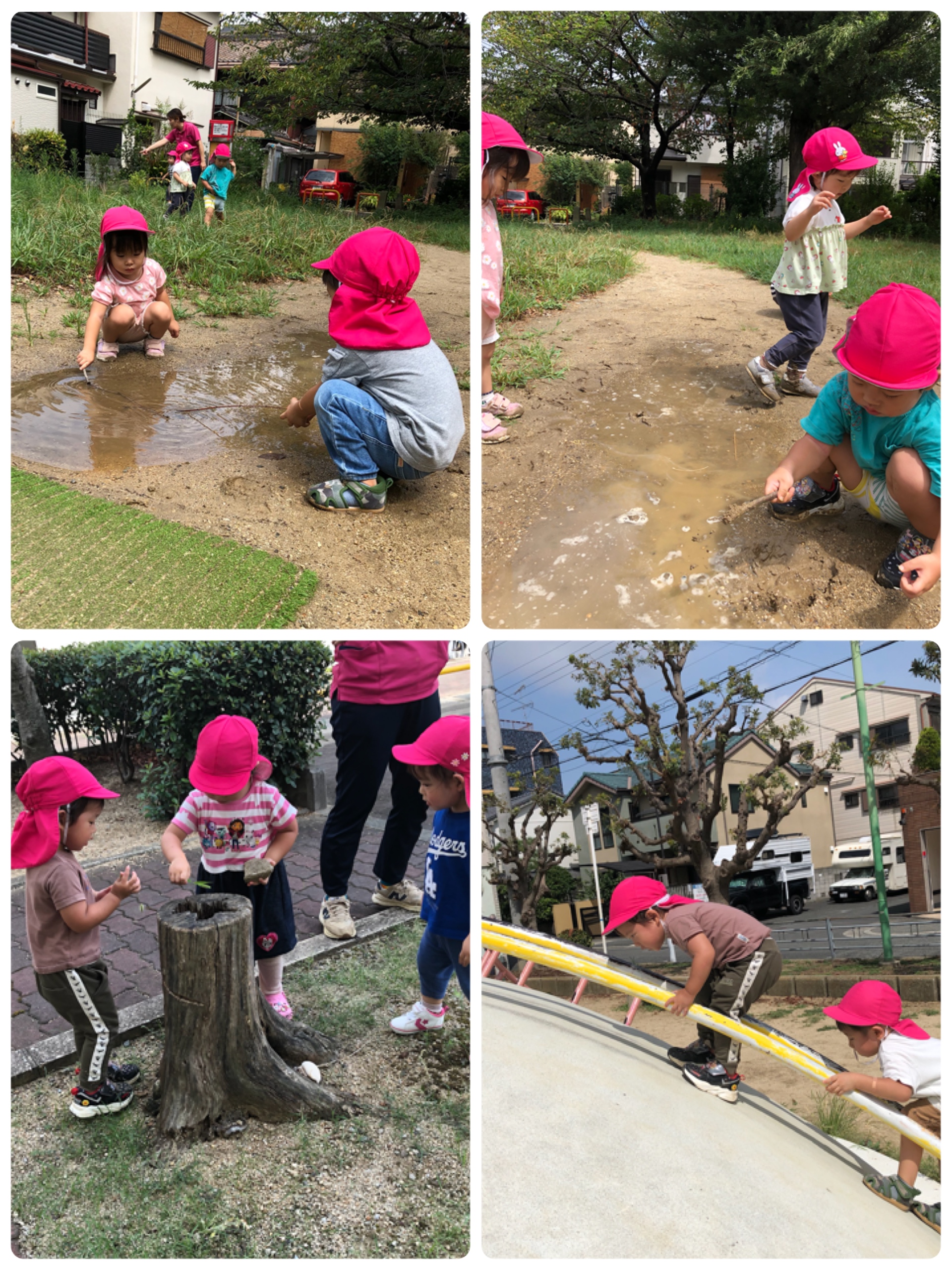 イエローチームさんは、公園で水たまりや遊具で遊んだり、水遊びもたっぷりしました☺️